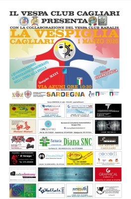 Domenica 1 marzo 2020 andrà in scena la 13 edizione della Vespiglia a Cagliari in via Azuni ore 9. La manifestazione, un omaggio motoristico alla Sartiglia, vedrà in gara, a caccia delle stelle, tanti appassionati di due ruote vestiti a maschera.