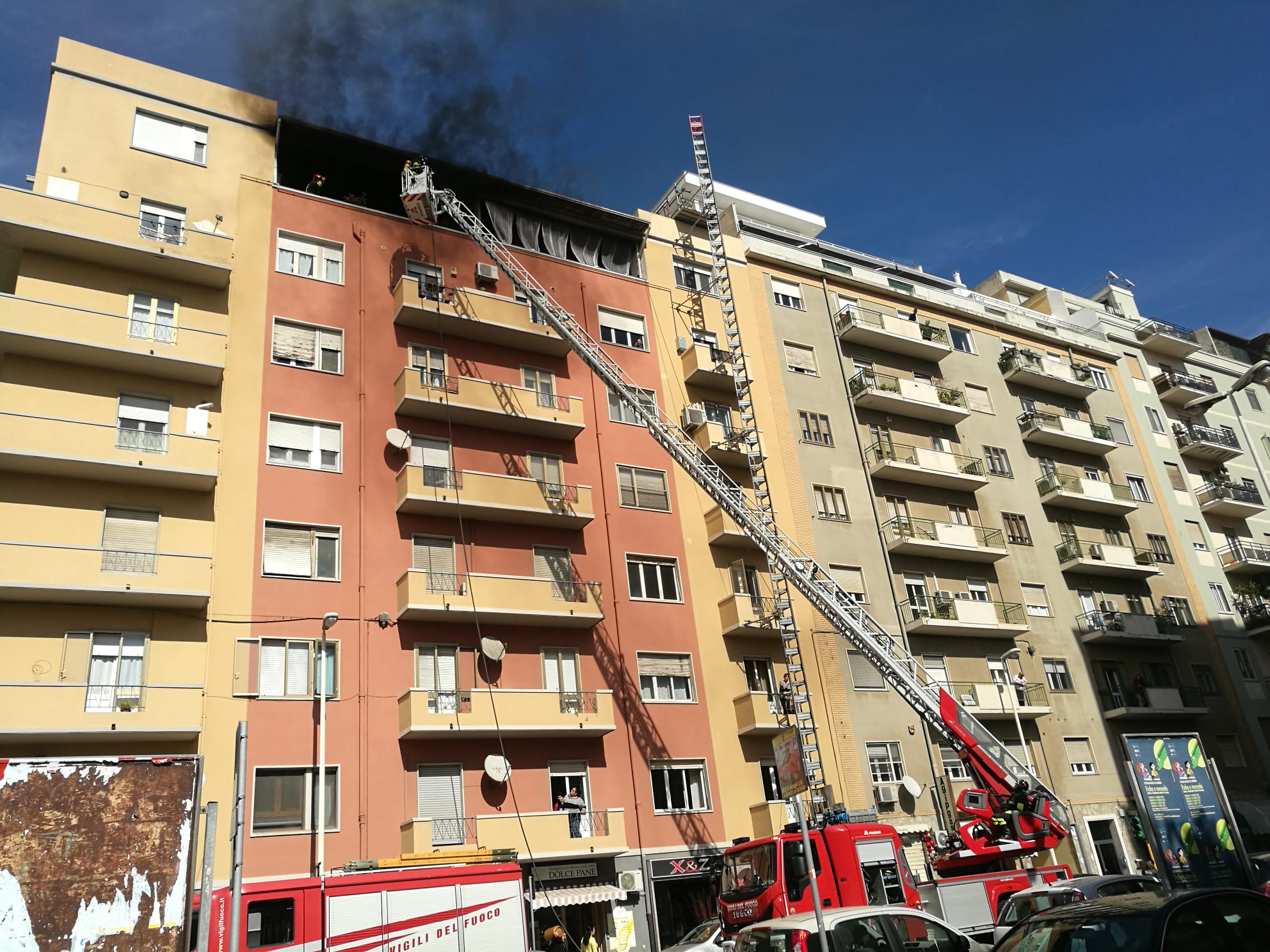 Un incendio è scoppiato in cima a un palazzo di via Cavaro, a Cagliari. Sul posto sono intervenute le squadre dei vigili del fuoco.