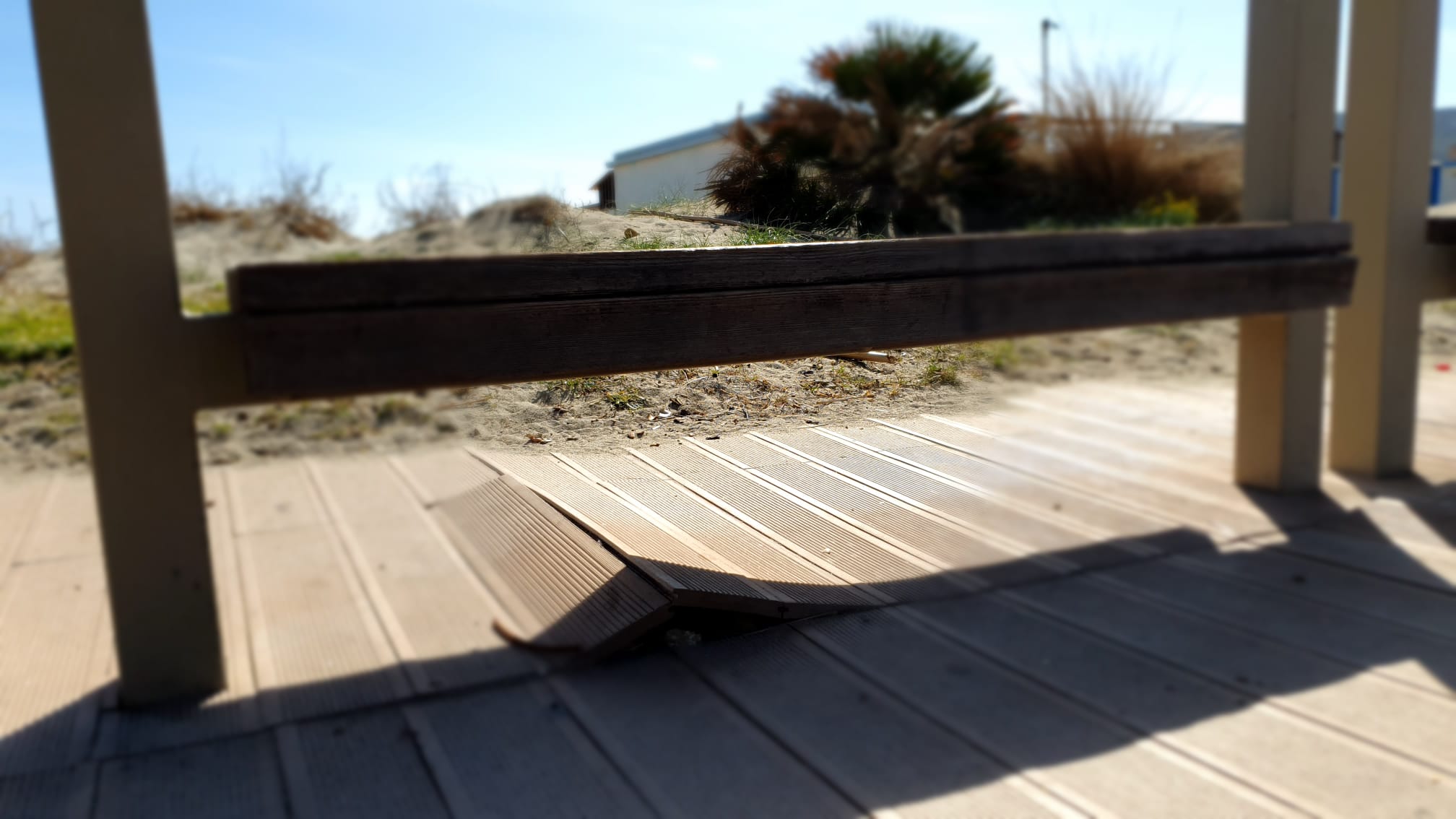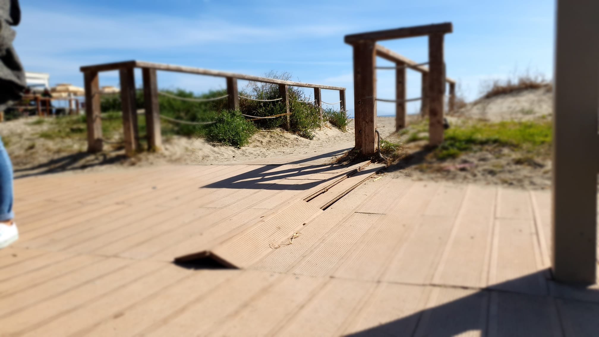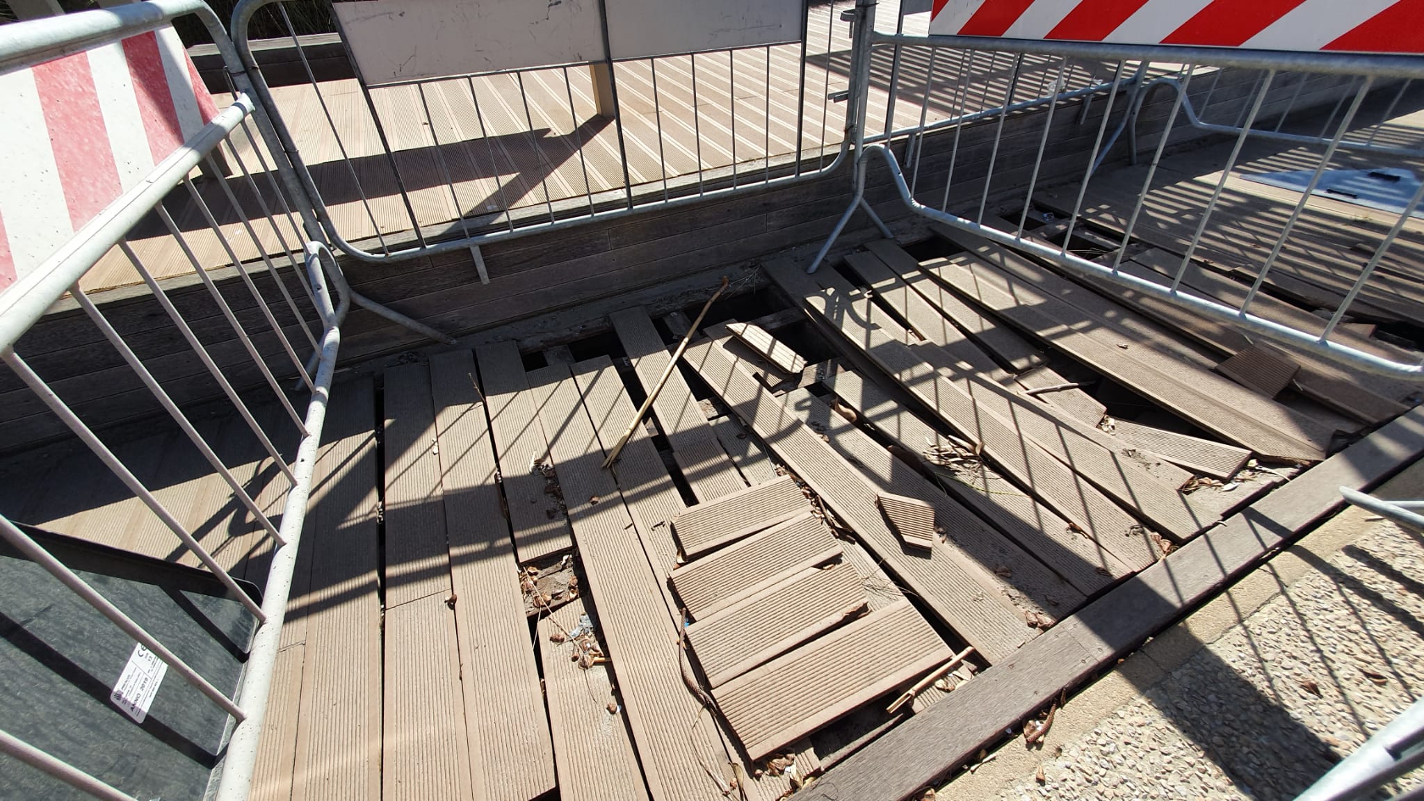 Ecco le immagini dei numerosi punti in cui le pedane risultano fuori sede e distrutte.