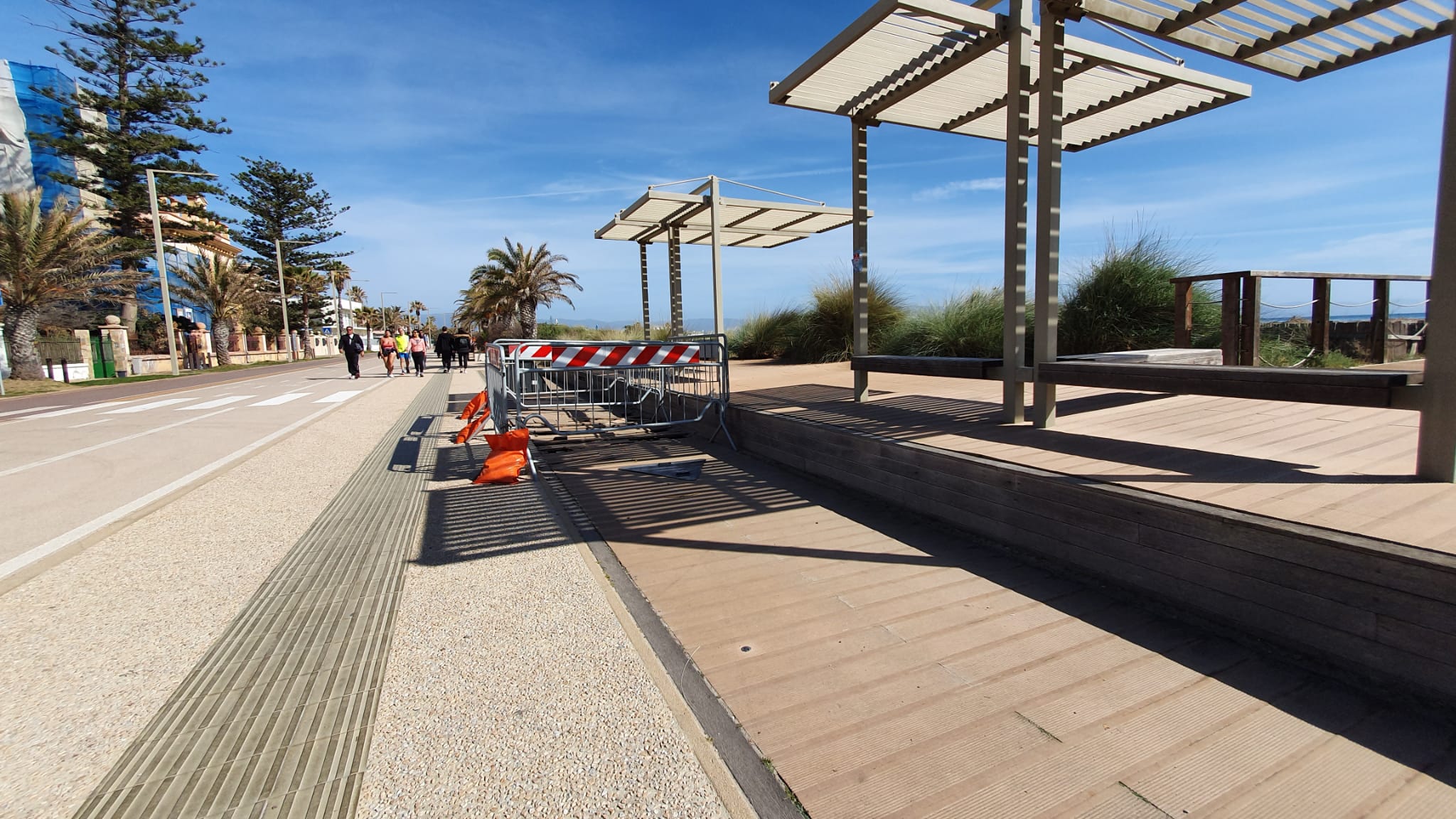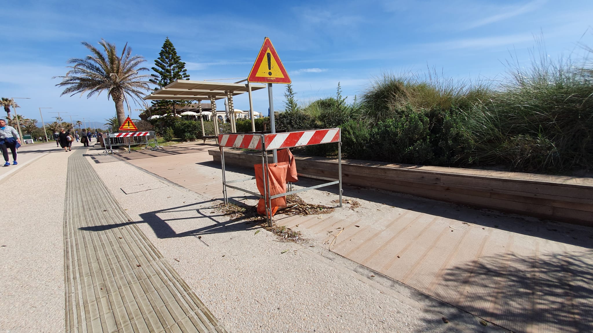 Se tutto va come vanno le cose di solito staranno lì ancora per parecchio tempo le transenne che arredano il Poetto di Cagliari da quando, nelle isole pedonali lungo la passeggiata, le assi in teak appaiono divelte.