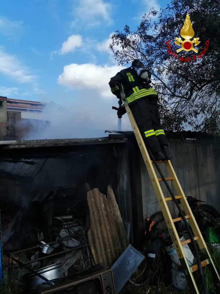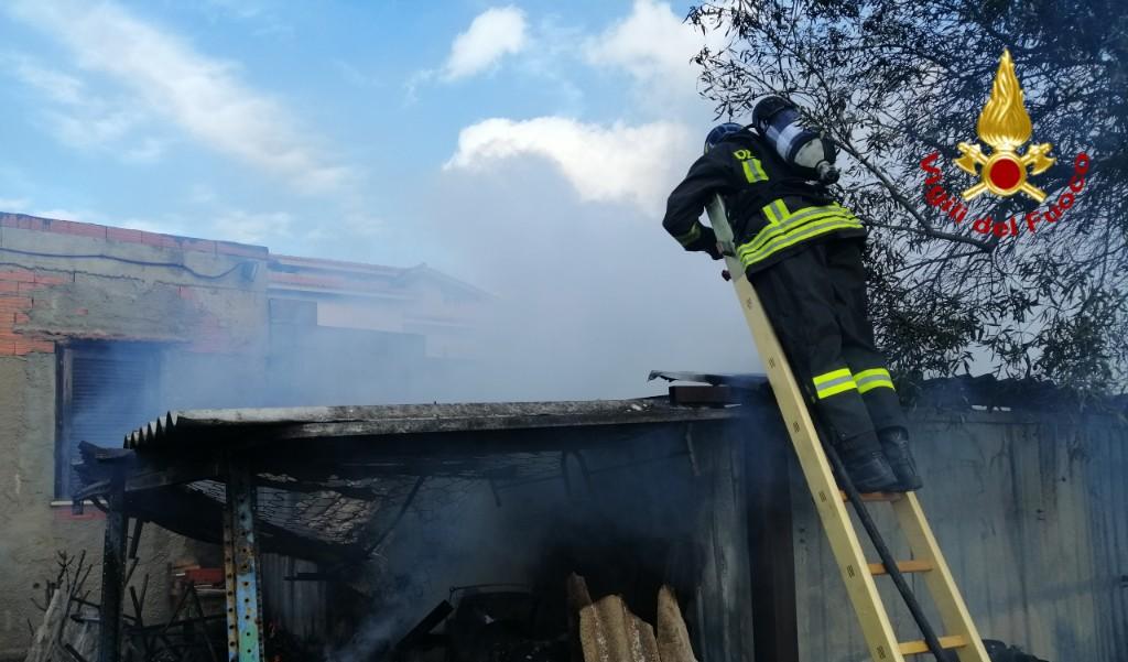 Le fiamme sono divampate in una struttura adibita a deposito attrezzi e hanno coinvolto il materiale all’interno.