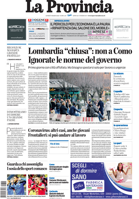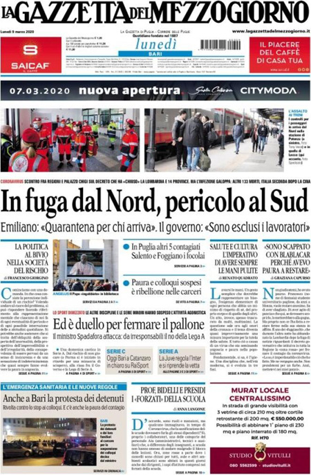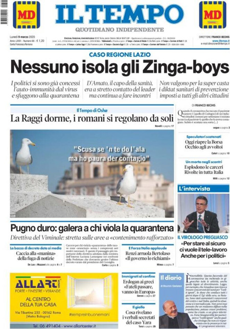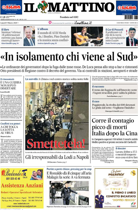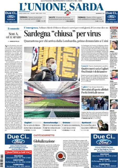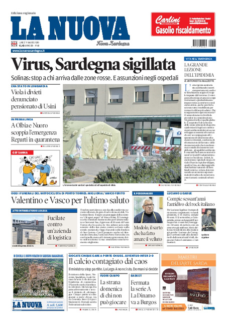 Uncategorized Rassegna stampa del 09.03.2020 Rassegna stampa del 09.03.2020 Da Redazione Cagliaripad (Archivio) - 9 Marzo 2020 TES ARTICOLI CORRELATIALTRI ARTICOLI DA QUESTO AUTORE Uncategorized “Passerella rovina dune a La Caletta”, esposto cittadini Uncategorized Sardegna: da oggi sei Province e due Città metropolitane Uncategorized Comunali: slittano in autunno anche in Sardegna Uncategorized Muravera, nasce in villaggio turistico area dedicata a ospiti con disabilità Uncategorized Laconi: litigio tra automobilisti, un denunciato per danneggiamento e minacce Uncategorized Cagliari, occhio alle multe: ecco gli autovelox del mese di aprile 2021 - Pubblicità - Ultime notizie Gimbe: “Sardegna agli ultimi posti in Italia per ciclo vaccinale completato” 31 Marzo 2021 Covid in Sardegna, Gimbe: “In una settimana casi in aumento del 56,8%” 31 Marzo 2021 Festino ‘clandestino’ a Cagliari: 12 sanzioni una denuncia 31 Marzo 2021