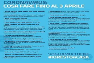 Farmacie e parafarmacie sono aperte normalmente. Asili, scuole e università sono chiuse fino al 3 aprile. Stop a riunioni, convegni, eventi e manifestazioni. Chiusi pub, cinema, palestre, piscine, discoteche, musei e biblioteche. Nei comuni i servizi essenziali e urgenti sono garantiti, molti altri sono fruibili online.