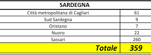 - 61 sono stati registrati nella Città Metropolitana di Cagliari (+9 rispetto all’ultimo aggiornamento);