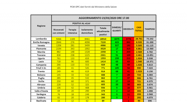 In tutta Italia i malati di Covid-19 hanno superato quota 50mila, con un incremento rispetto di 3.780: domenica l’incremento era stato di 3.957; 6.077 le vittime e 7.432 i guariti.