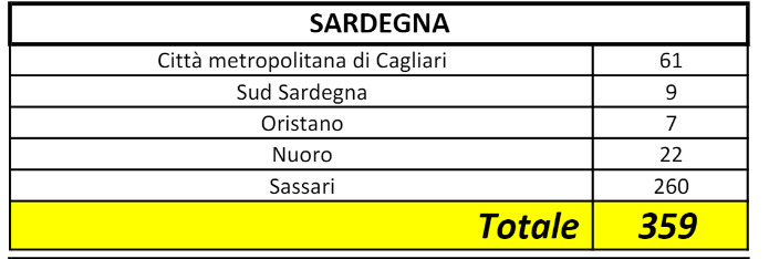 - 61 sono stati registrati nella Città Metropolitana di Cagliari (+9 rispetto all’ultimo aggiornamento);