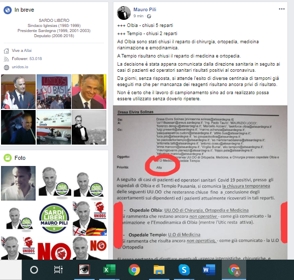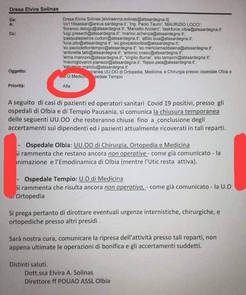 “Sono stati chiusi ad Olbia il reparto di chirurgia, ortopedia, medicina rianimazione e emodinamica e a Tempio il reparto di medicina e ortopedia”, questo è quanto afferma Mauro Pili, leader di Unidos in un post su Facebook.