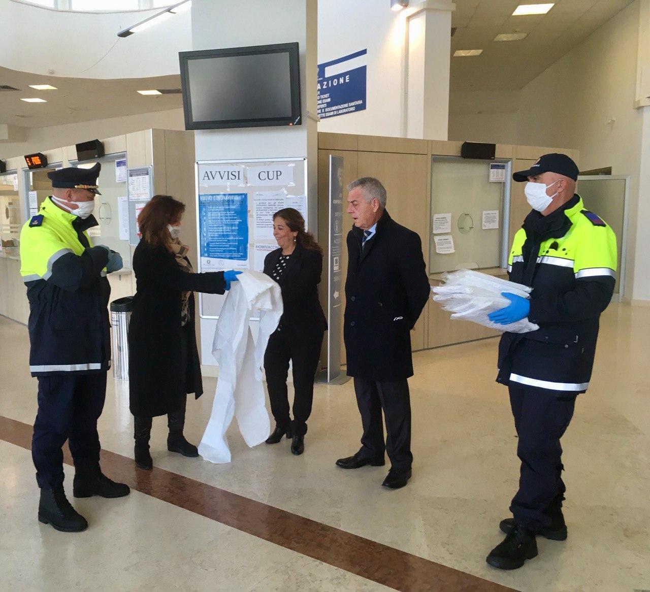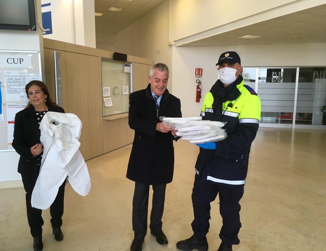 Stamattina la sindaca di Carbonia Paola Massidda e il Comandante della Polizia Locale Gioni Biagioni, accompagnati dal referente per le associazioni di Protezione civile Giampiero Atzei, si sono recati nel Presidio Ospedaliero Sirai per consegnare il materiale al Direttore dell’Area sociosanitaria locale di Carbonia, Ferdinando Angelantoni, e alla Direttrice dei Presidi Ospedalieri Sirai di Carbonia e Santa Barbara di Iglesias Dottoressa Giovanna Gregu.
