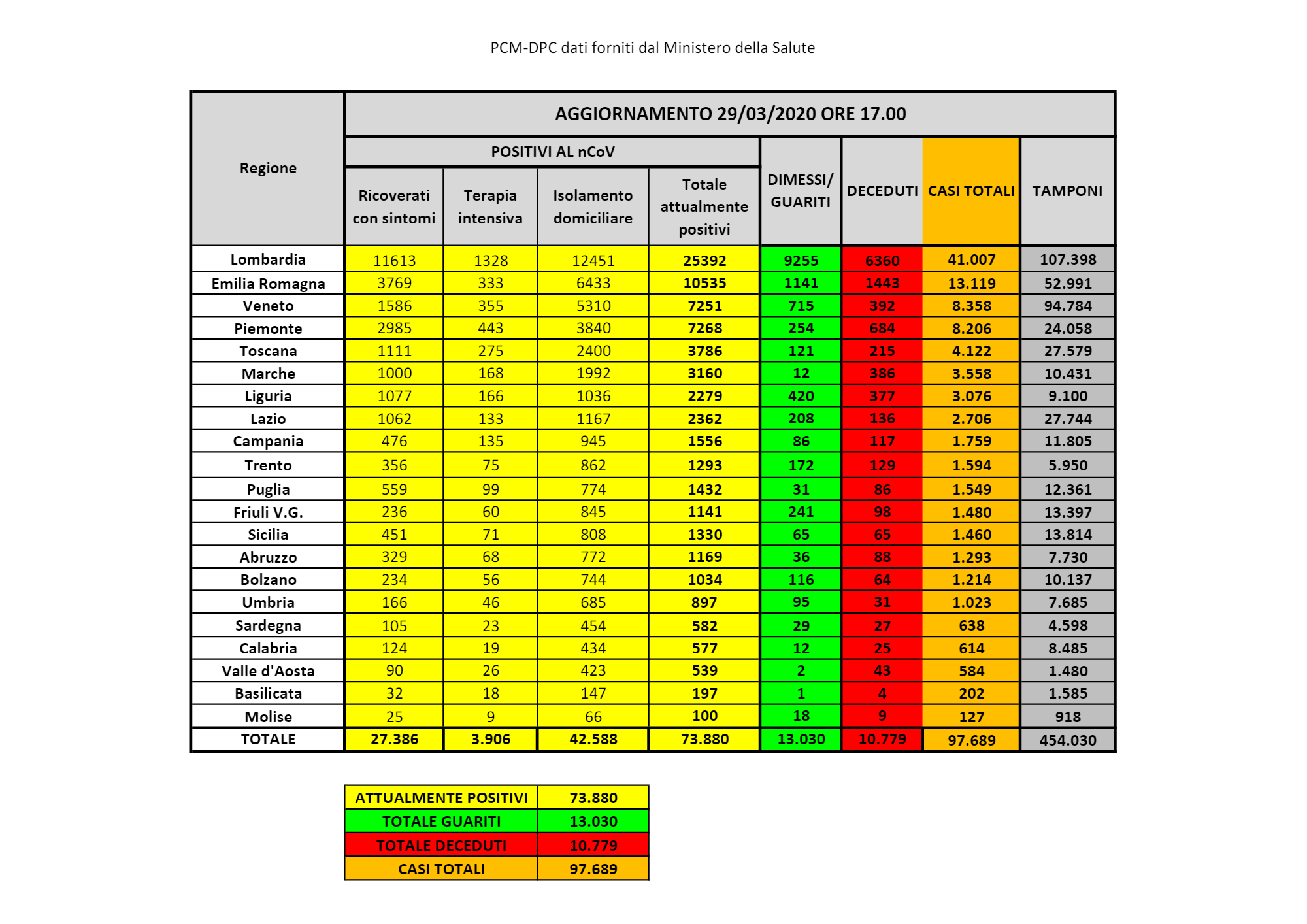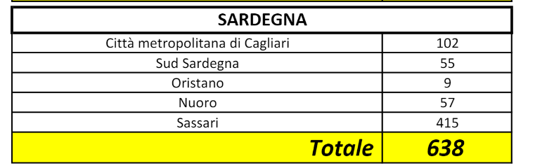 Questi i dati nazionali, in cui è inserita anche la Sardegna: