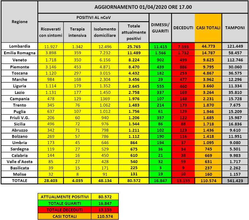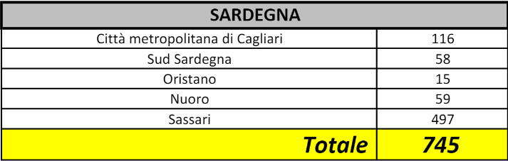 Questa la situazione in Italia, tra cui anche la Sardegna: