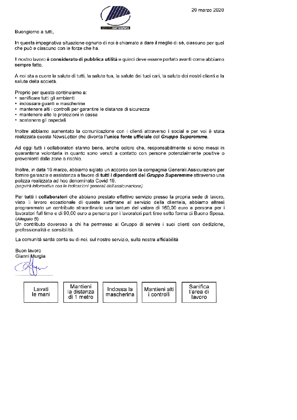 La Superemme ha voluto replicare tramite una nota inviata alla stampa. “Stiamo vivendo un periodo molto impegnativo e sappiamo ciò che conta di più” scrive l’azienda. “Siamo guidati ogni giorno dai nostri valori e le cose più importanti per noi sono la salute e la sicurezza dei nostri dipendenti di tutti voi e della comunità in cui operiamo. Nient’altro importa di più”.