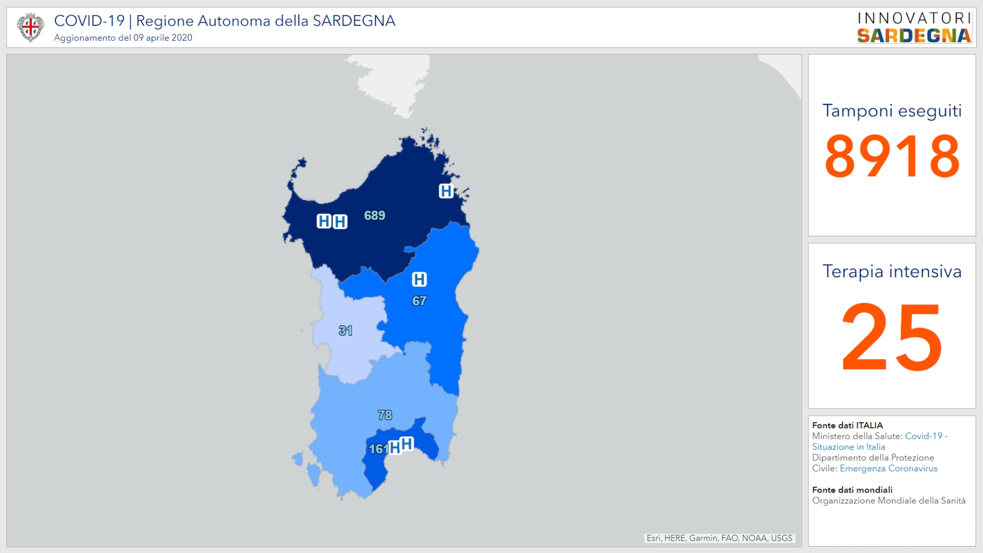 In totale nell’Isola sono stati eseguiti 8.918 test. I pazienti ricoverati in ospedale sono in tutto 131, di cui 25 in terapia intensiva, mentre 745 sono le persone in isolamento domiciliare. Il dato progressivo dei casi positivi comprende 56 pazienti guariti, più altri 30 guariti clinicamente.