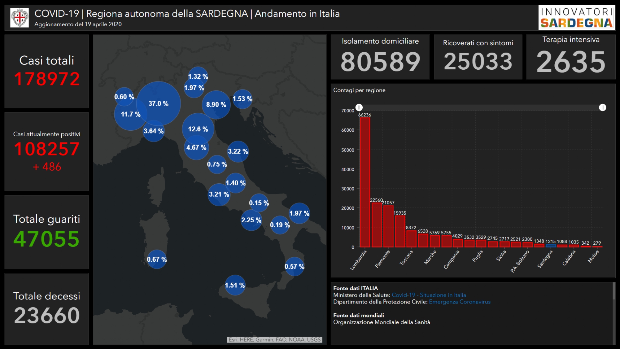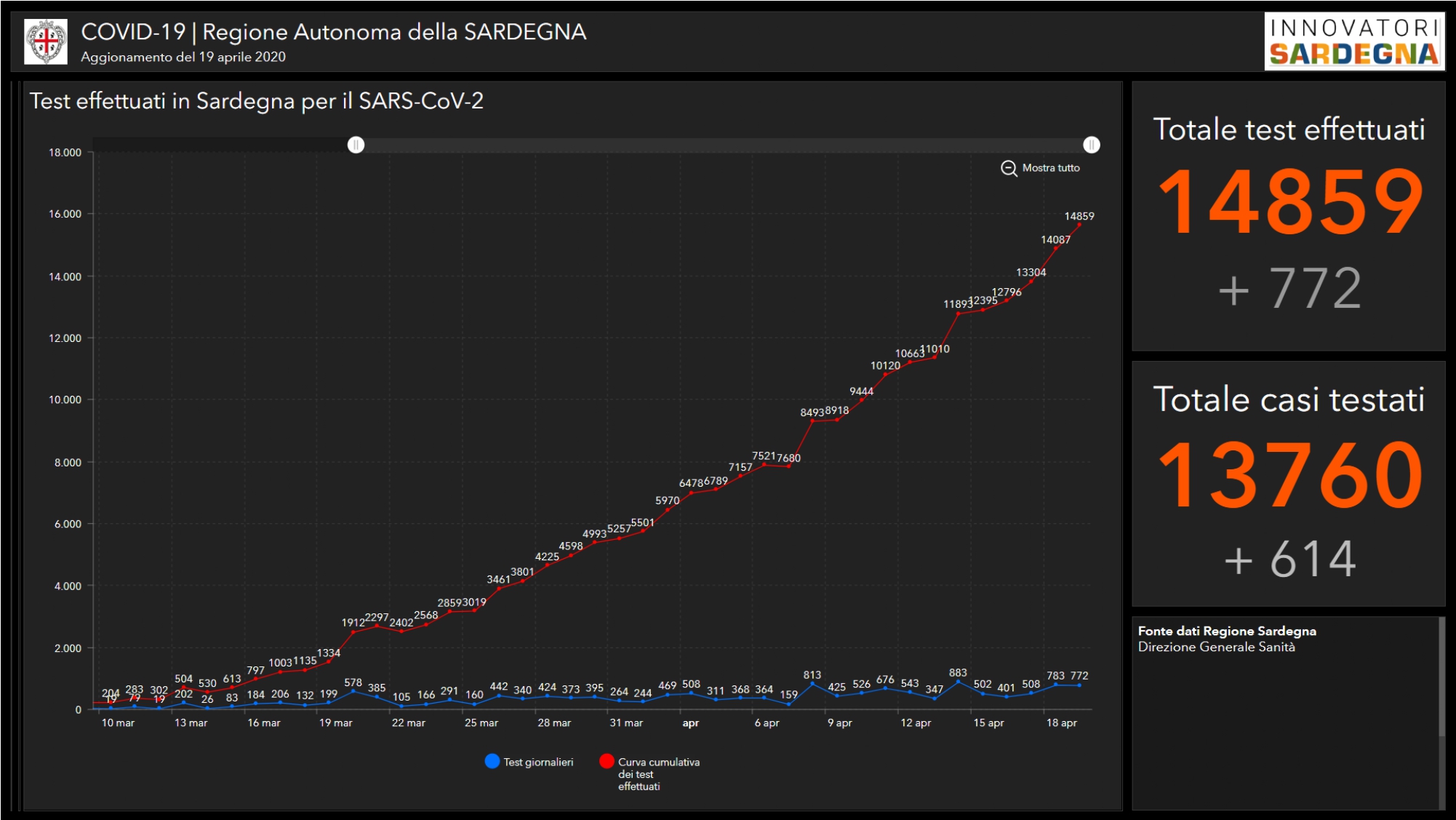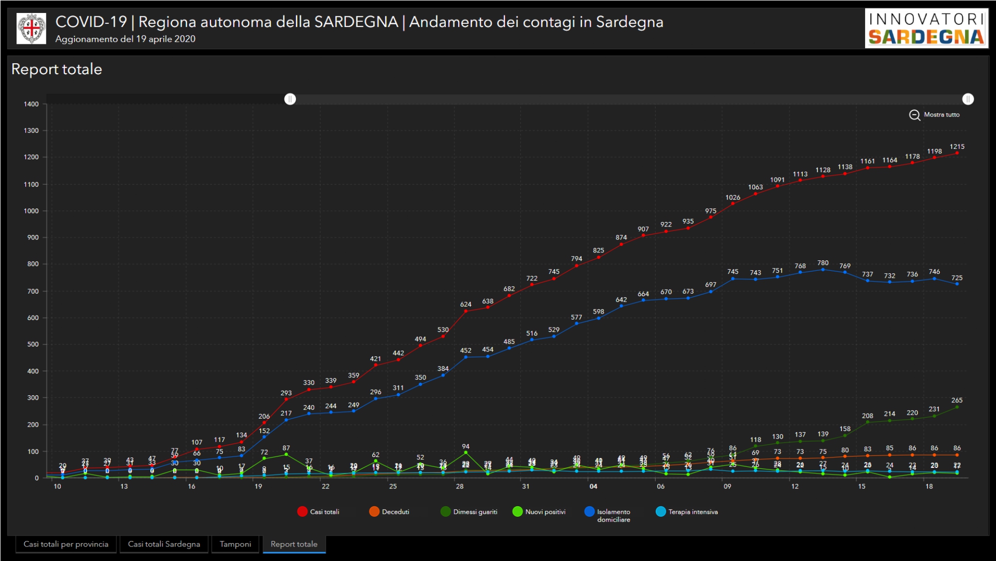 Sono 1.215 i casi di positività al virus Covid-19 accertati in Sardegna dall’inizio dell’emergenza.