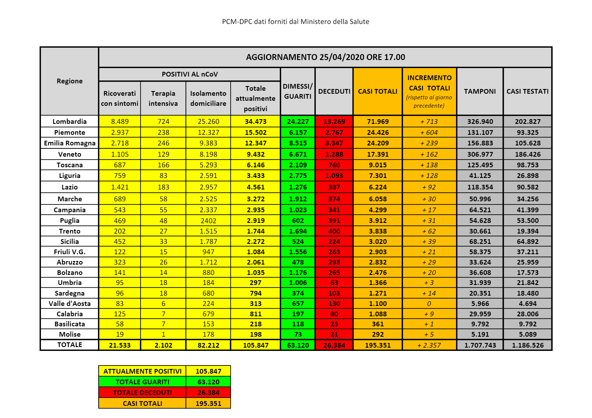 Sono 1.271 i casi di positività al virus Covid-19 accertati in Sardegna dall’inizio dell’emergenza.