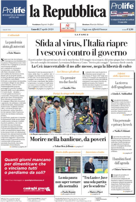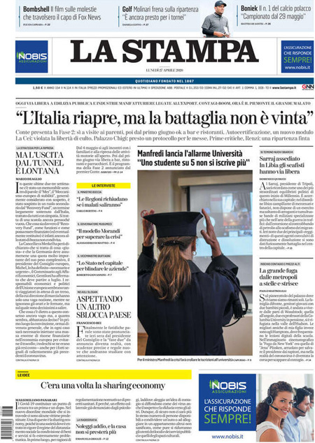Rassegna stampa del 27.04.2020