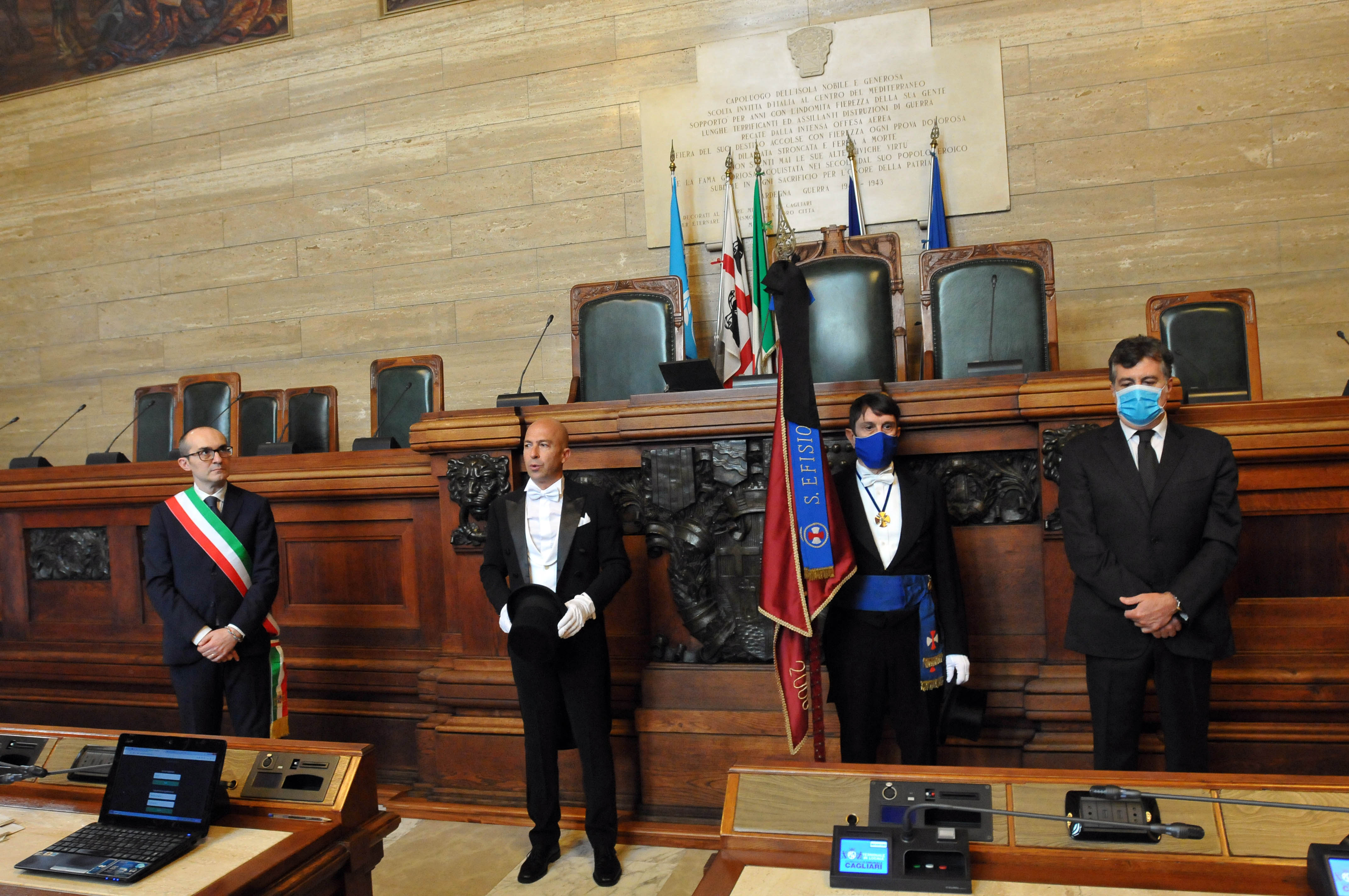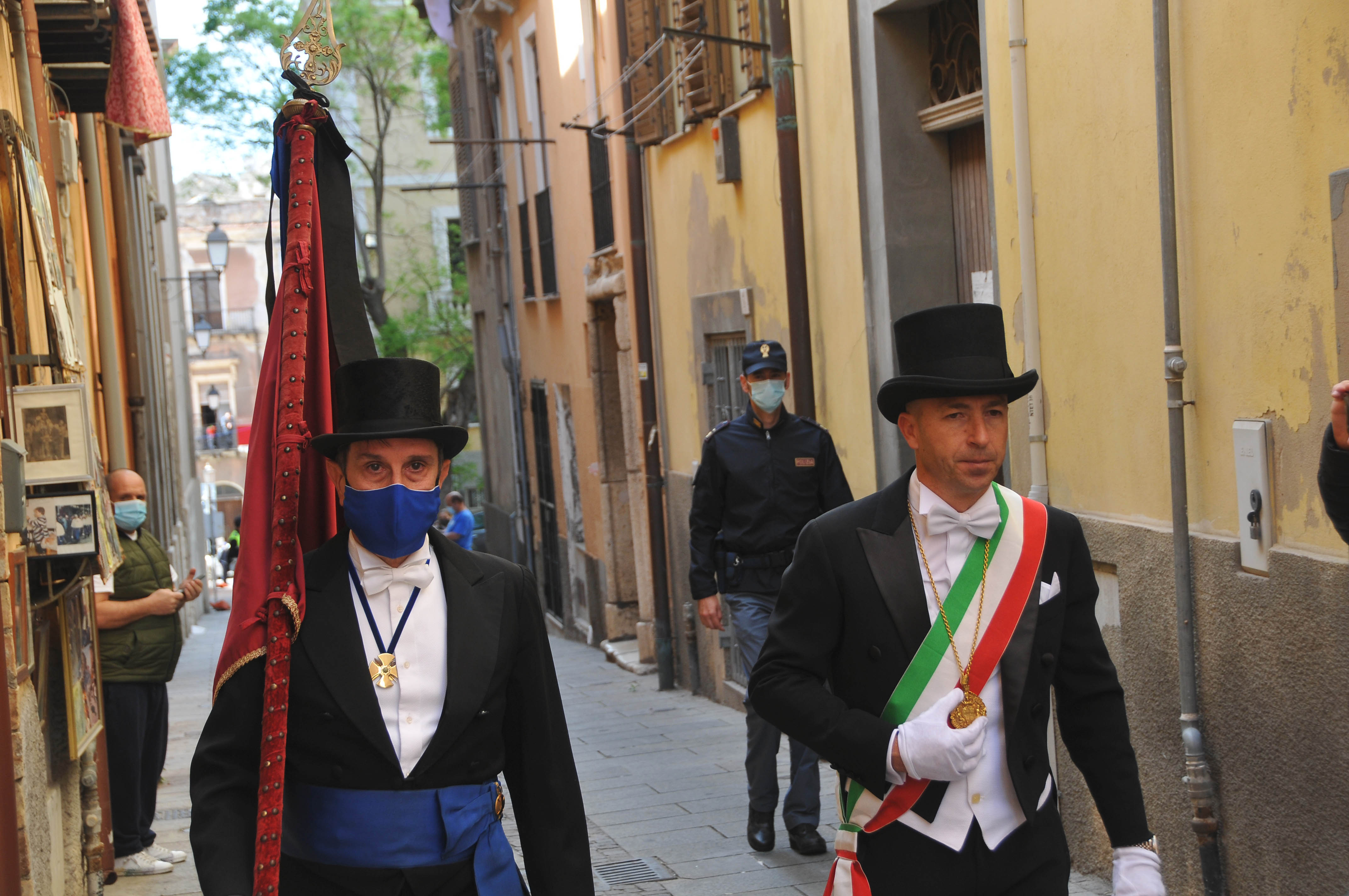 Attorno alle 9,30, con la tradizionale formula il sindaco Paolo Truzzu ha insignito il consigliere comunale della fascia tricolore e del “Toson d’oro”, onorificenza concessa al Capoluogo sardo da Carlo II, re di Spagna nel 1679. Davanti soltanto il presidente del Consiglio comunale, Edoardo Tocco, il presidente dell’Arciconfraternita del Gonfalone, Giancarlo Sanna, la moglie e i due figli dell’Alter Nos.