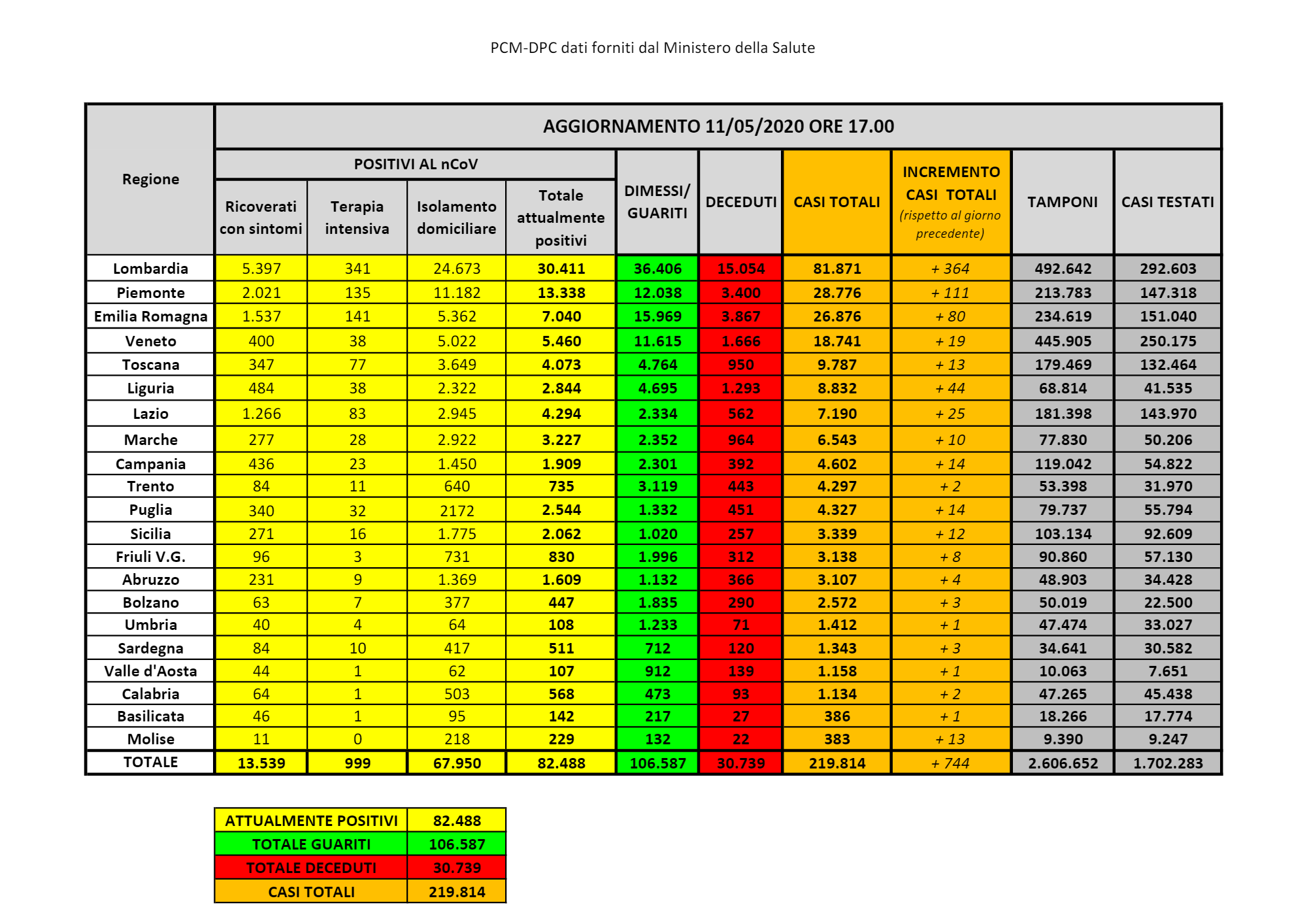 Il dato progressivo dei casi positivi comprende 614 pazienti guariti (+12 rispetto al dato precedente), più altri 98 guariti clinicamente.