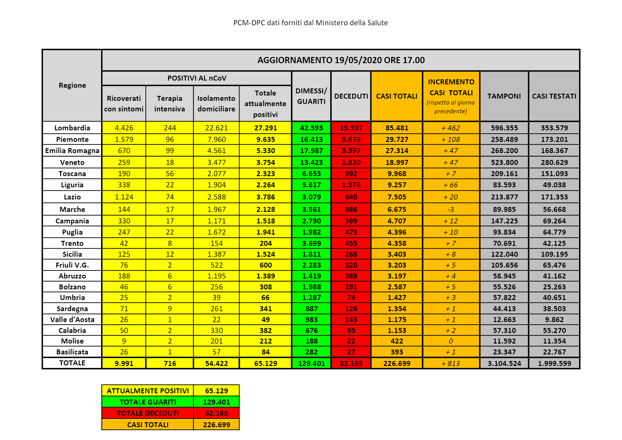 I dati in Italia completi: