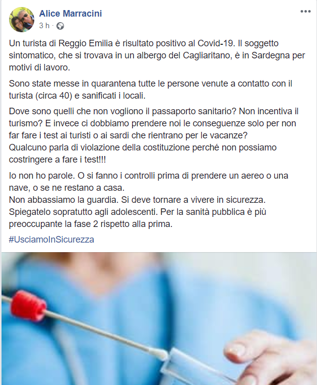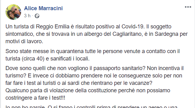 In merito alle affermazioni di Alice Marracini relative al passaporto sanitario, riportiamo l’approfondimento di Cagliaripad: