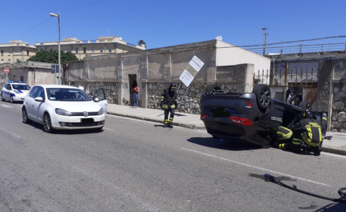 La Ford Fiesta ha sbandato, finendo dapprima sul marciapiede e successivamente su un palo di un cartello pubblicitario, ribaltandosi.
