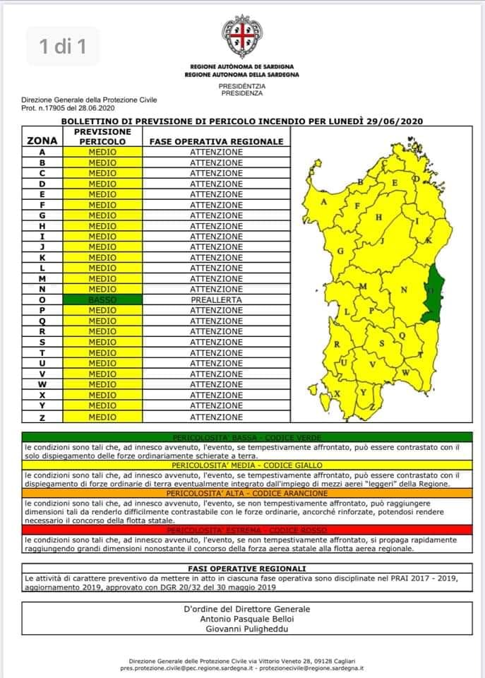 L’ondata di caldo che accompagna la regione non dà segni di cedimento e continua l’allerta incendi nell’Isola. La Protezione Civile sarda ha emanato un nuovo bollettino di previsione di pericolo incendio: per la giornata di lunedì 29 giugno, è prevista un’allerta gialla per pericolosità media in diverse zone della Sardegna.