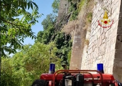 Intervento nella mattinata di oggi dei vigili del fuoco nel quartiere di Castello e le mura sovrastanti la viale Regina Elena a Cagliari per la messa in sicurezza di alcuni alberi secchi e pericolanti.
