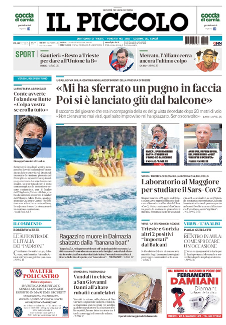 Uncategorized Rassegna stampa del 20.07.2020 Rassegna stampa del 20.07.2020 Da Redazione Cagliaripad (Archivio) - 20 Luglio 2020 TES ARTICOLI CORRELATIALTRI ARTICOLI DA QUESTO AUTORE Uncategorized “Passerella rovina dune a La Caletta”, esposto cittadini Uncategorized Sardegna: da oggi sei Province e due Città metropolitane Uncategorized Comunali: slittano in autunno anche in Sardegna Uncategorized Muravera, nasce in villaggio turistico area dedicata a ospiti con disabilità Uncategorized Laconi: litigio tra automobilisti, un denunciato per danneggiamento e minacce Uncategorized Cagliari, occhio alle multe: ecco gli autovelox del mese di aprile 2021 - Pubblicità - Ultime notizie Gimbe: “Sardegna agli ultimi posti in Italia per ciclo vaccinale completato” 31 Marzo 2021 Covid in Sardegna, Gimbe: “In una settimana casi in aumento del 56,8%” 31 Marzo 2021 Festino ‘clandestino’ a Cagliari: 12 sanzioni una denuncia 31 Marzo 2021