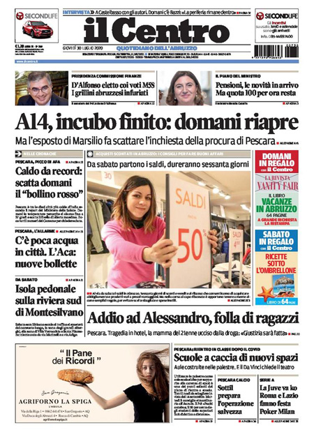 Uncategorized RASSEGNA STAMPA 30-07-2020 RASSEGNA STAMPA 30-07-2020 Da Redazione Cagliaripad - 30 Luglio 2020 TES TES ARTICOLI CORRELATIALTRI ARTICOLI DA QUESTO AUTORE Uncategorized “Passerella rovina dune a La Caletta”, esposto cittadini Uncategorized Sardegna: da oggi sei Province e due Città metropolitane Uncategorized Comunali: slittano in autunno anche in Sardegna Uncategorized Muravera, nasce in villaggio turistico area dedicata a ospiti con disabilità Uncategorized Laconi: litigio tra automobilisti, un denunciato per danneggiamento e minacce Uncategorized Cagliari, occhio alle multe: ecco gli autovelox del mese di aprile 2021 - Pubblicità - Ultime notizie Gimbe: “Sardegna agli ultimi posti in Italia per ciclo vaccinale completato” 31 Marzo 2021 Covid in Sardegna, Gimbe: “In una settimana casi in aumento del 56,8%” 31 Marzo 2021 Festino ‘clandestino’ a Cagliari: 12 sanzioni una denuncia 31 Marzo 2021
