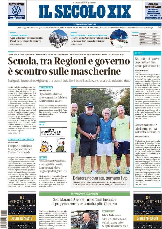 Uncategorized Rassegna stampa 26.08.2020 Rassegna stampa 26.08.2020 Da Redazione Cagliaripad - 26 Agosto 2020 ARTICOLI CORRELATIALTRI ARTICOLI DA QUESTO AUTORE Uncategorized “Passerella rovina dune a La Caletta”, esposto cittadini Uncategorized Sardegna: da oggi sei Province e due Città metropolitane Uncategorized Comunali: slittano in autunno anche in Sardegna Uncategorized Muravera, nasce in villaggio turistico area dedicata a ospiti con disabilità Uncategorized Laconi: litigio tra automobilisti, un denunciato per danneggiamento e minacce Uncategorized Cagliari, occhio alle multe: ecco gli autovelox del mese di aprile 2021 - Pubblicità - Ultime notizie Gimbe: “Sardegna agli ultimi posti in Italia per ciclo vaccinale completato” 31 Marzo 2021 Covid in Sardegna, Gimbe: “In una settimana casi in aumento del 56,8%” 31 Marzo 2021 Festino ‘clandestino’ a Cagliari: 12 sanzioni una denuncia 31 Marzo 2021