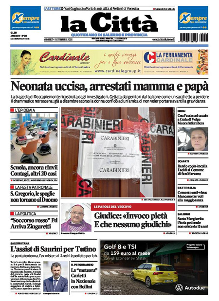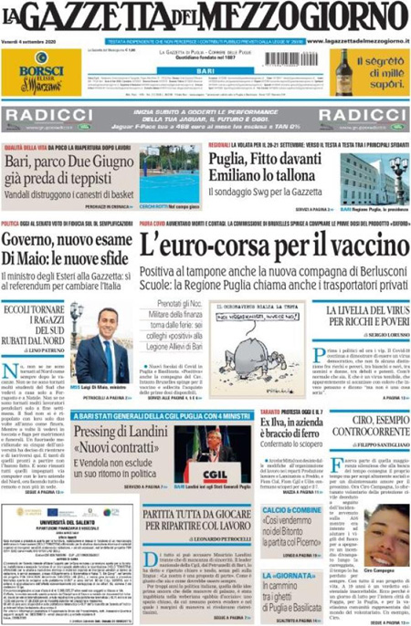 Uncategorized Rassegna stampa del 4.09.2020 Rassegna stampa del 4.09.2020 Da Redazione Cagliaripad (Archivio) - 4 Settembre 2020 TES TES ARTICOLI CORRELATIALTRI ARTICOLI DA QUESTO AUTORE Uncategorized “Passerella rovina dune a La Caletta”, esposto cittadini Uncategorized Sardegna: da oggi sei Province e due Città metropolitane Uncategorized Comunali: slittano in autunno anche in Sardegna Uncategorized Muravera, nasce in villaggio turistico area dedicata a ospiti con disabilità Uncategorized Laconi: litigio tra automobilisti, un denunciato per danneggiamento e minacce Uncategorized Cagliari, occhio alle multe: ecco gli autovelox del mese di aprile 2021 - Pubblicità - Ultime notizie Gimbe: “Sardegna agli ultimi posti in Italia per ciclo vaccinale completato” 31 Marzo 2021 Covid in Sardegna, Gimbe: “In una settimana casi in aumento del 56,8%” 31 Marzo 2021 Festino ‘clandestino’ a Cagliari: 12 sanzioni una denuncia 31 Marzo 2021