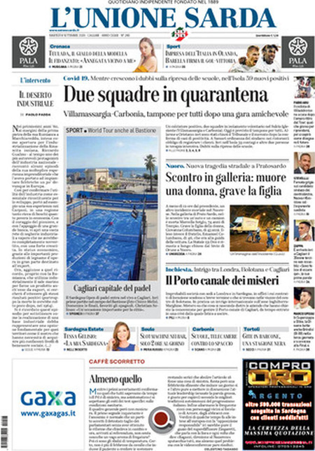 Uncategorized Rassegna stampa dell’8.09.2020 Rassegna stampa dell’8.09.2020 Da Redazione Cagliaripad (Archivio) - 8 Settembre 2020 TES TES ARTICOLI CORRELATIALTRI ARTICOLI DA QUESTO AUTORE Uncategorized “Passerella rovina dune a La Caletta”, esposto cittadini Uncategorized Sardegna: da oggi sei Province e due Città metropolitane Uncategorized Comunali: slittano in autunno anche in Sardegna Uncategorized Muravera, nasce in villaggio turistico area dedicata a ospiti con disabilità Uncategorized Laconi: litigio tra automobilisti, un denunciato per danneggiamento e minacce Uncategorized Cagliari, occhio alle multe: ecco gli autovelox del mese di aprile 2021 - Pubblicità - Ultime notizie Gimbe: “Sardegna agli ultimi posti in Italia per ciclo vaccinale completato” 31 Marzo 2021 Covid in Sardegna, Gimbe: “In una settimana casi in aumento del 56,8%” 31 Marzo 2021 Festino ‘clandestino’ a Cagliari: 12 sanzioni una denuncia 31 Marzo 2021