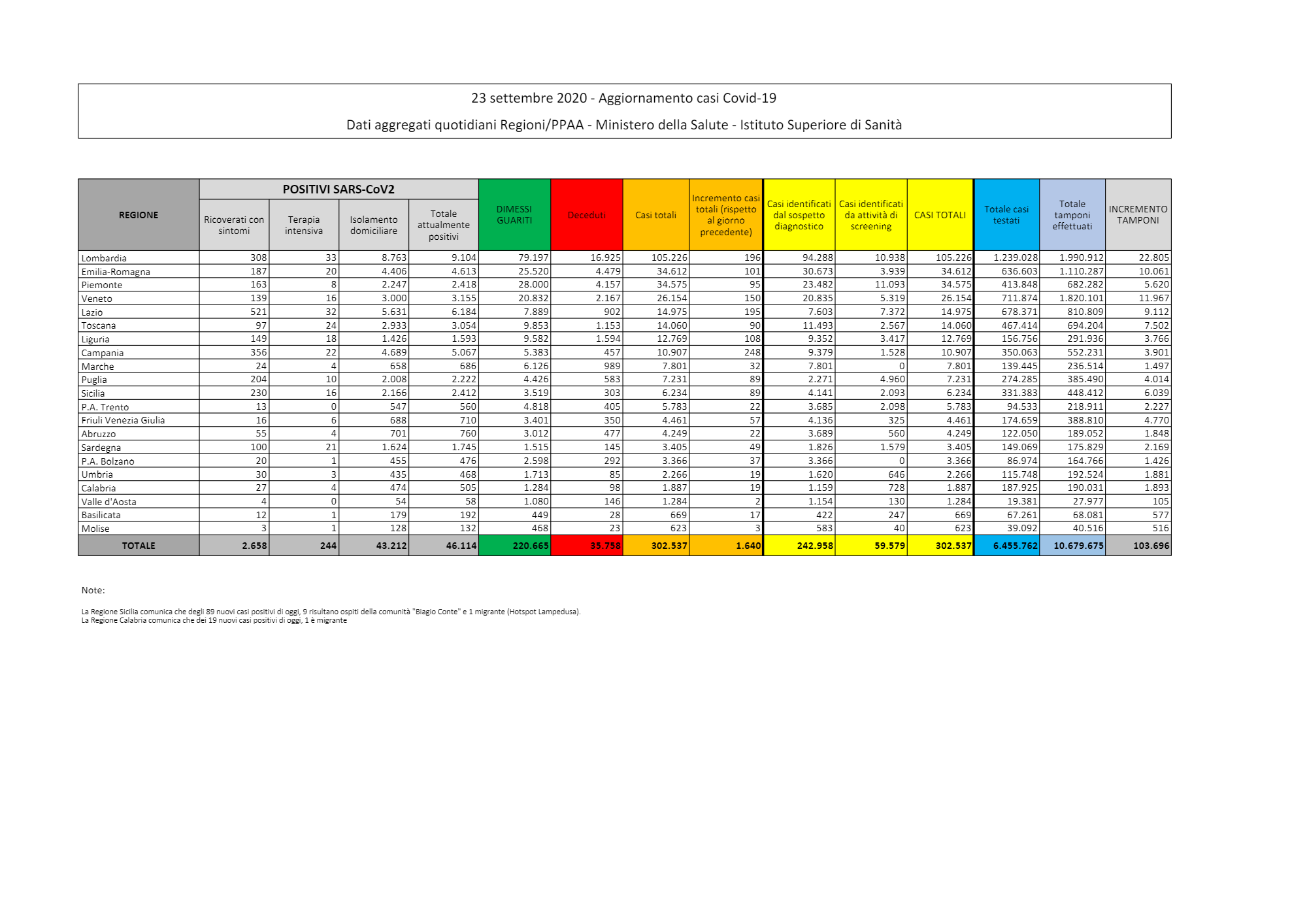 Qui di seguito il grafico completo fornito dalla Protezione civile: