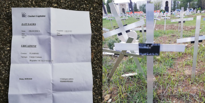 “Mi sono recata al Cimitero Flaminio e ho scoperto che c’è una tomba a mio nome. All’ufficio mi hanno stampato un foglio con i dati della salma e la sua ubicazione con tanto di cartina per l’orientamento.