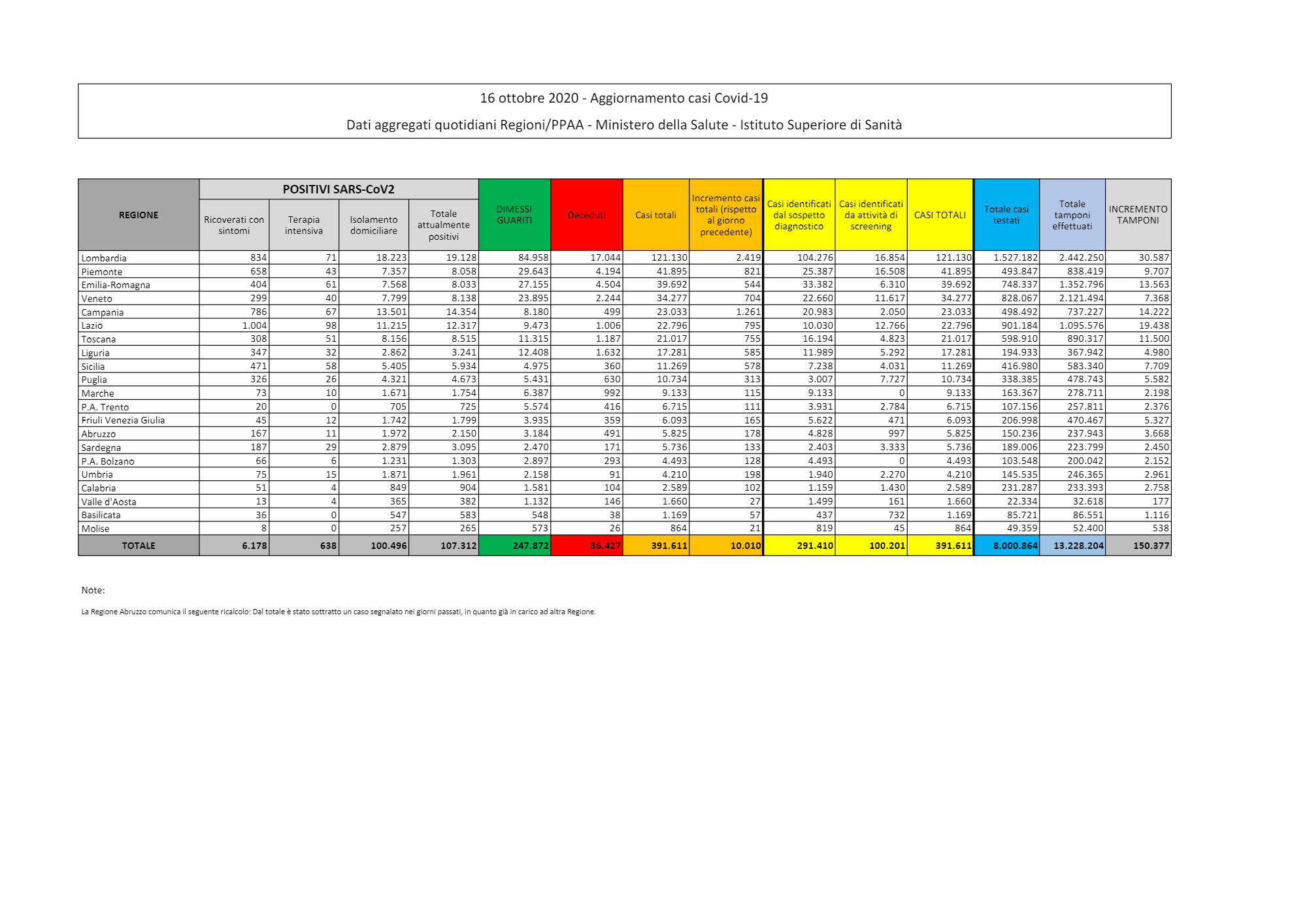 Qui di seguito il grafico completo fornito dalla Protezione civile: