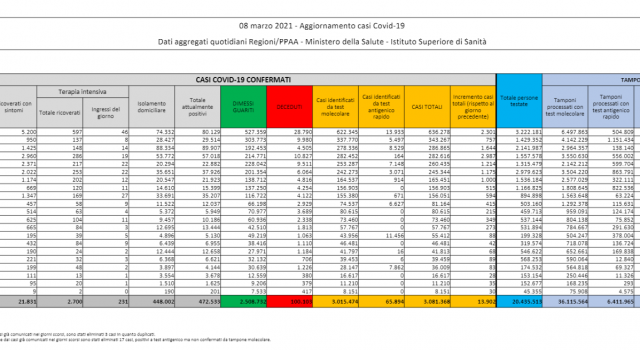 L’Isola, con i suoi 24 casi gravi di Covid-19, si trova dietro la Calabria (32) e dietro la P. A. Bolzano (39):