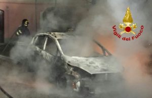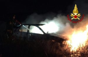 Decimomannu, auto distrutta dalle fiamme: intervengono vigili del fuoco