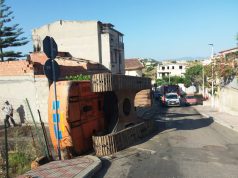 Un escavatore si è ribaltato in via delle More a Cagliari durante una manovra, danneggiando una proprietà privata, una Fiat punto e diversi segnali...