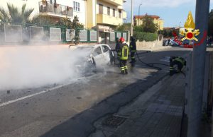 Elmas, auto in fiamme: intervento dei Vigili del fuoco
