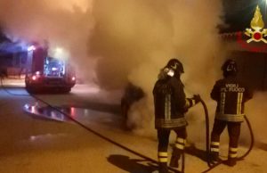 Intervento dei Vigili del Fuoco del Comando Provinciale di Cagliari intorno alle 23 in via Mates a Cagliari, per l'incendio di un autovettura in...