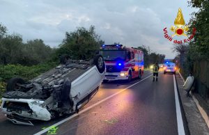 Sassari, auto perde il controllo e si ribalta