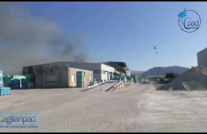 In fiamme un capannone nell’Area industriale di Guspini, interviene elicottero