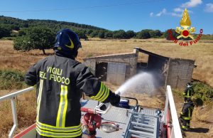 Intervento del distaccamento dei Vigili del Fuoco di Ozieri per lo spegnimento di un incendio divampato in alcuni locali adibiti allo stoccaggio di fieno...