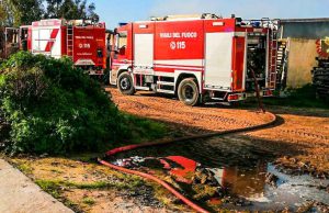 Oristano, incendio in un capannone: intervento dei Vigili del Fuoco