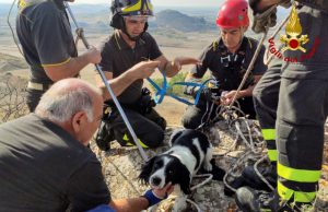 Dopo una caduta di una decina di metri, è rimasto bloccato in fondo a uno strapiombo: un cane è stato soccorso e salvato dai...