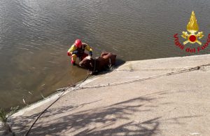 Carbonia, mucca cade in un invaso: i Vigili del fuoco la...