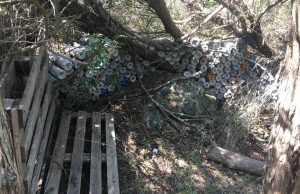 Olbia, rimosso il muro di bottiglie nelle dune di Rena Bianca