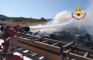 Intervento della squadra "5A" dei Vigili del fuoco di Iglesias a Siliqua, in località Matta Panenna, per un incendio in un fienile nei pressi...