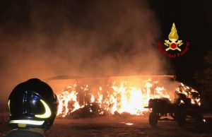 Domusnovas, fienile in fiamme nella notte: intervento dei Vigili del fuoco