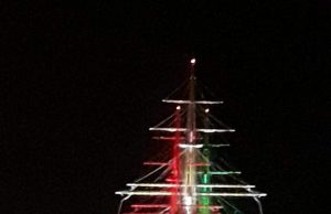 Cagliari, la Vespucci al porto: il tricolore la illumina a giorno