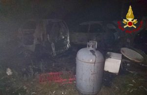 Fiamme nella serata di ieri in località Sieni a Sìnnai dove sono andate a fuoco due auto e una decina di bombole GPL.